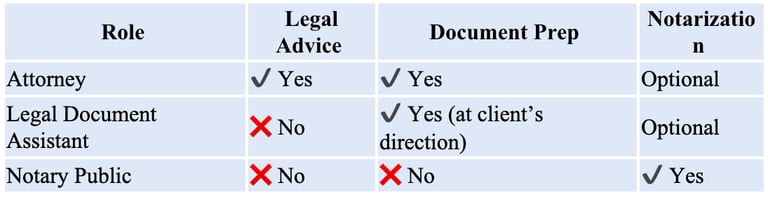 📊 LDA vs. Attorney vs. Notary (Quick Clarity)